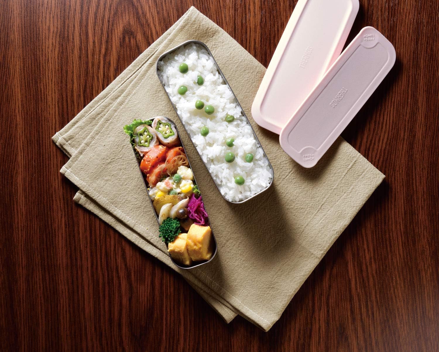 2層に分かれたプラスチックの内側容器と柔らかい内蓋は、本体から取り出して電子レンジで温めることもできるので、忙しい朝のお弁当作りにはとてもうれしい。食洗器で洗えるのも嬉しい。