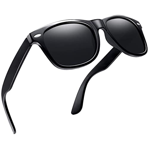 Joopin サングラス 偏光サングラス スポーツサングラス 耐久 軽量 ウェリントンタイプ uvカット 運転 自転車 バイク ランニング ゴルフ 釣り 登山用 メンズ レディース 男女兼用(【A02 】ブラック)