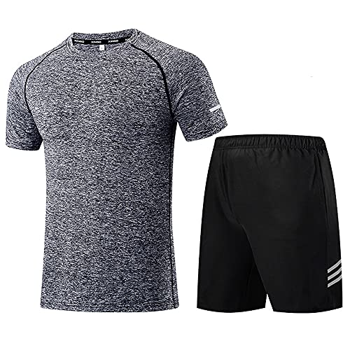 (ランバオシー)Lanbaosi 半袖 ジャージ メンズ セットアップ 夏 服 吸汗速乾 スポーツウェア Tシャツ 半ズボン 上下 セット トレーニングウェア ランニング テニス 部屋着 2点セットXL(体重55kg~65kg)上下セットA