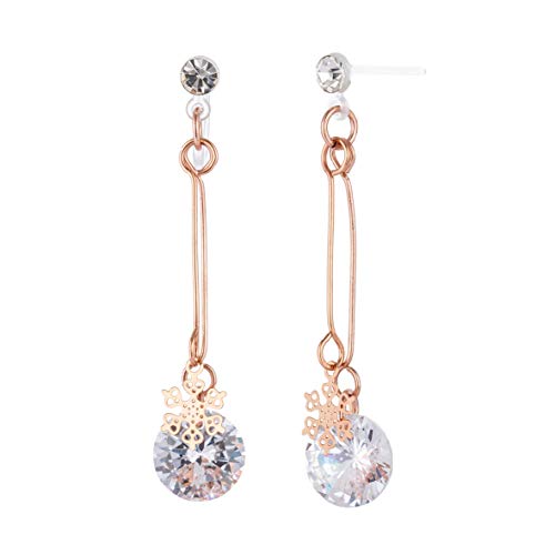 ピアス CZ 雪 ロング 樹脂 揺れる レディース アレルギーフリー (ピンクゴールド ピアス)