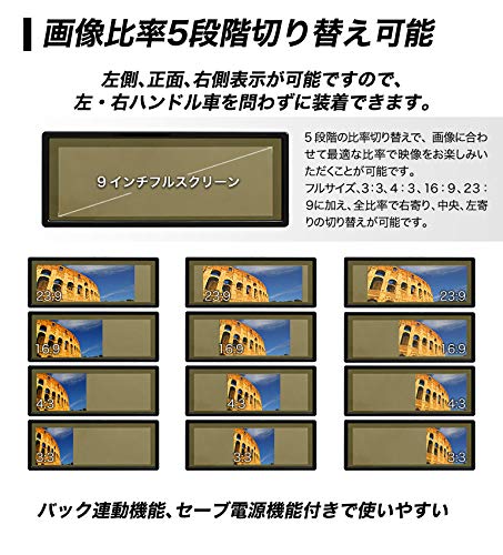 9インチでも視界の邪魔にならないスマートなモニター