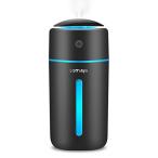 タンク容量が350mlと大きめなので、一回の給水で約10時間使用できます。広口タンクで給水しやすく、お手入れが簡単です。薄めた次亜塩素酸水を入れて使用することもできます。転倒しても水漏れしないのでお子様やペットがいる部屋でも安心です。充電式なので、コードレスで使用可能です。7色に光るLEDライトを搭載しています。30dB以下の運転音も魅力的ですね。